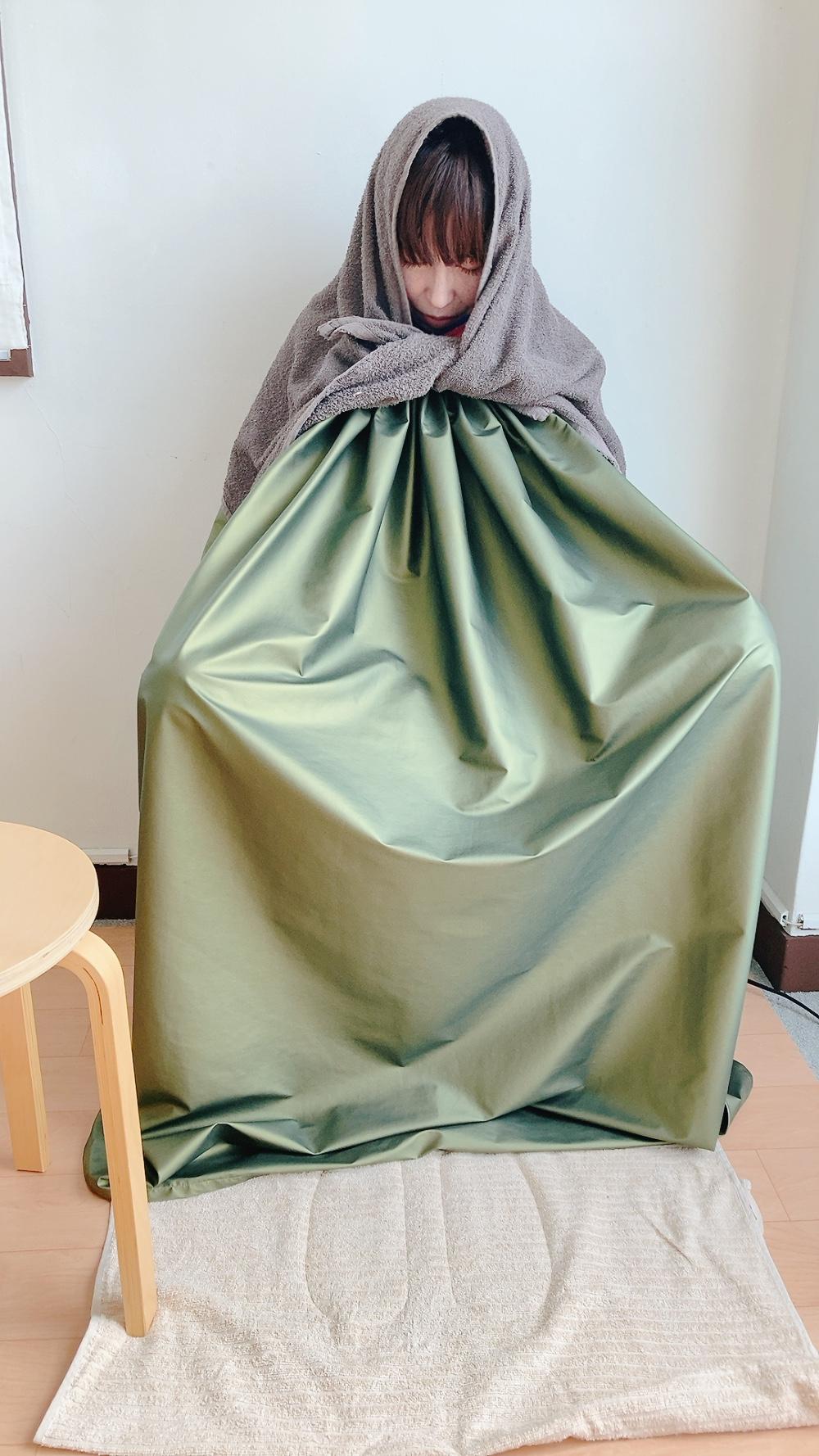 ジワジワ体があったまる感じが最高に気持ちいい。ハーブの香りにも癒されます。何より終了後マントを脱いだ時に驚きの体の軽さ!!